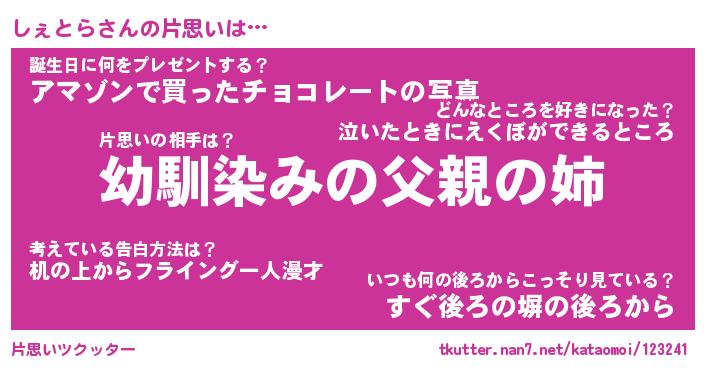 | 胡散臭い通販商品みたいなあだ名 | 『必ず成功する水晶球…その名も「しぇとら」』 |