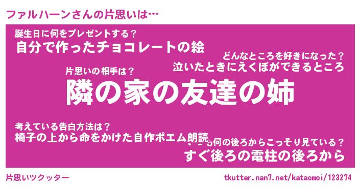 | ポケモン風あだ名 | 『ファチュウ』『ファルダネ』 |