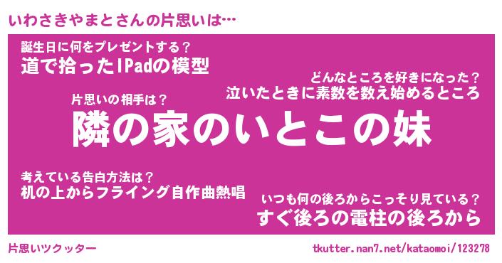 | 胡散臭い通販商品みたいなあだ名 | 『必ず成功する水晶球…その名も「いわさきやまと」』 |