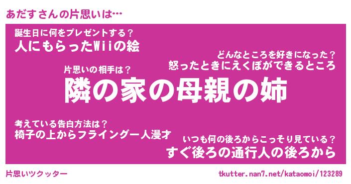 | ポケモン風あだ名 | 『アダチュウ』『アダスダネ』 |