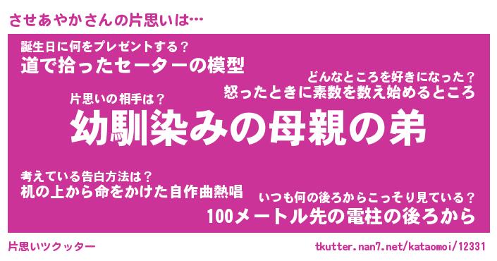 | 男性向けラノベタイトル風あだ名 | 『させあやかの憂鬱』 |