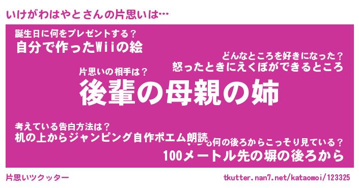 | ヘコむあだ名 | 『いけにー』『牛乳』『いけ太郎』 |