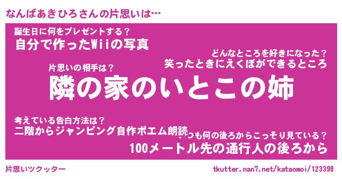 | 男性向けラノベタイトル風あだ名 | 『なんばあきひろの憂鬱』 |