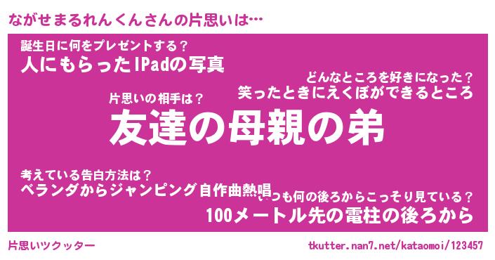 | 胡散臭い通販商品みたいなあだ名 | 『億万長者になれるブレスレット…その名も「ながせまるれんくん」』 |