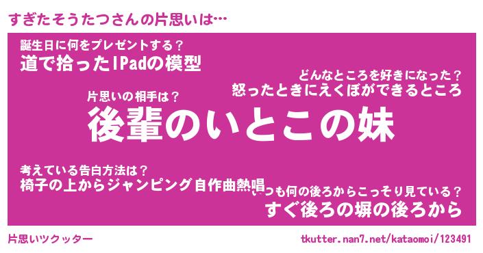 | 胡散臭い通販商品みたいなあだ名 | 『モテモテ間違いなし水晶球…その名も「すぎたそうたつ」』 |