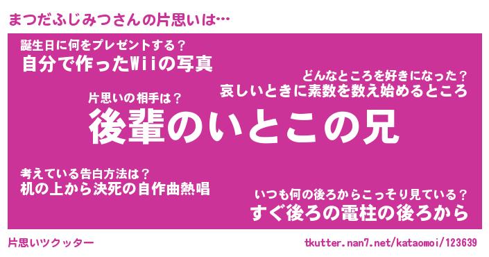 | ツイッター | まつだふじみつさんのツイッターID『dendenmushi_kun』 |