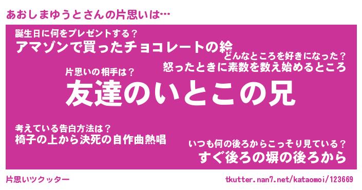 | 胡散臭い通販商品みたいなあだ名 | 『億万長者になれる水晶球…その名も「あおしまゆうと」』 |