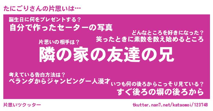 | ポケモン風あだ名 | 『タニチュウ』『タニゴダネ』 |