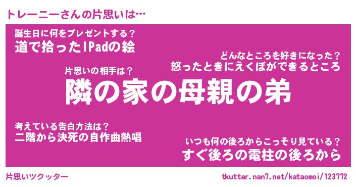 | 胡散臭い通販商品みたいなあだ名 | 『モテモテ間違いなしブレスレット…その名も「トレーニー」』 |