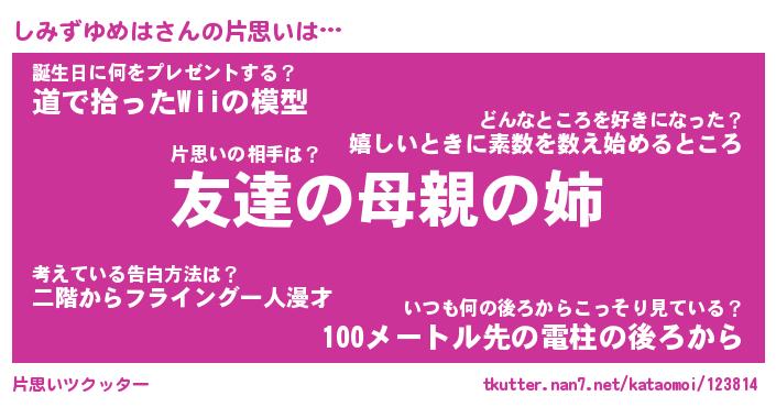 | ツイッター | しみずゆめはさんのツイッターID『fukuyoka_man』 |