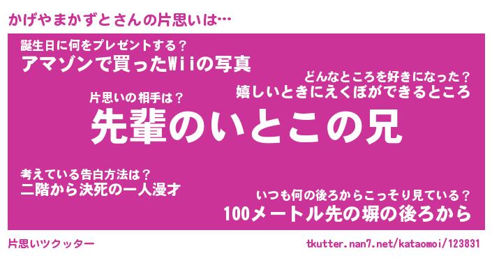 | 胡散臭い通販商品みたいなあだ名 | 『モテモテ間違いなし水晶球…その名も「かげやまかずと」』 |