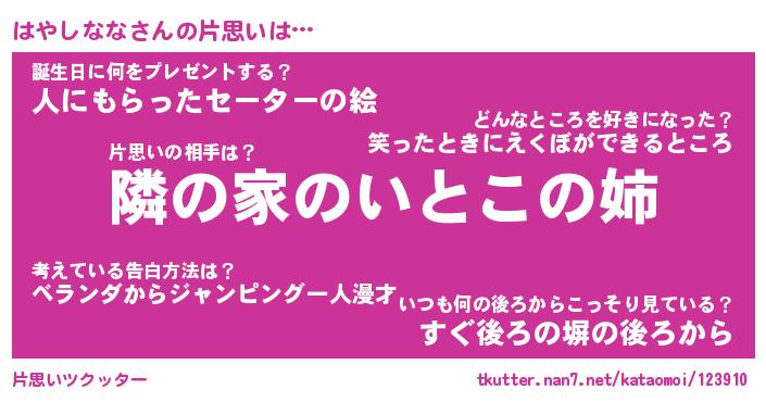 | 男性向けラノベタイトル風あだ名 | 『はやしななの憂鬱』 |