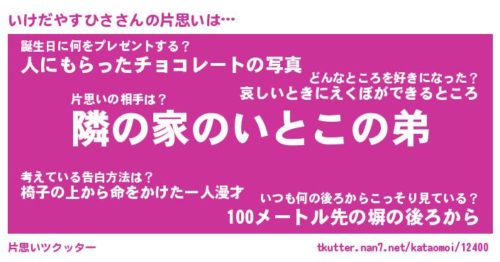 | ヘコむあだ名 | 『いけもー』『なまこ酢』『いけお』 |