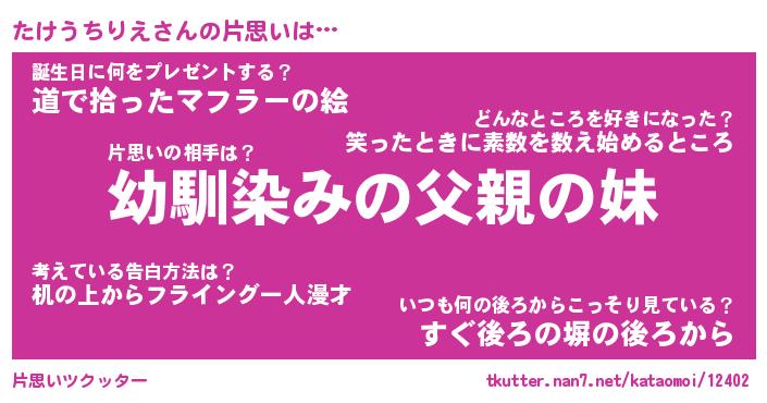| 男性向けラノベタイトル風あだ名 | 『たけうちりえの憂鬱』 |