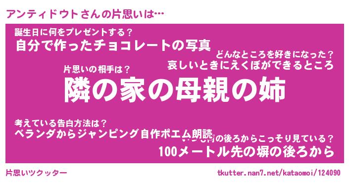 | 男性向けラノベタイトル風あだ名 | 『アンティドウトの憂鬱』 |