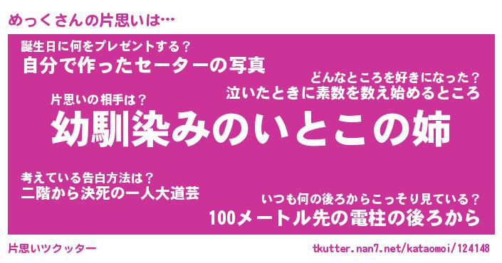 | ヘコむあだ名 | 『めっにゅー』『牛乳』『めっを』 |