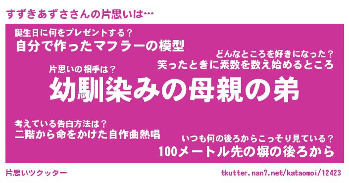 | 胡散臭い通販商品みたいなあだ名 | 『必ず成功するブレスレット…その名も「すずきあずさ」』 |