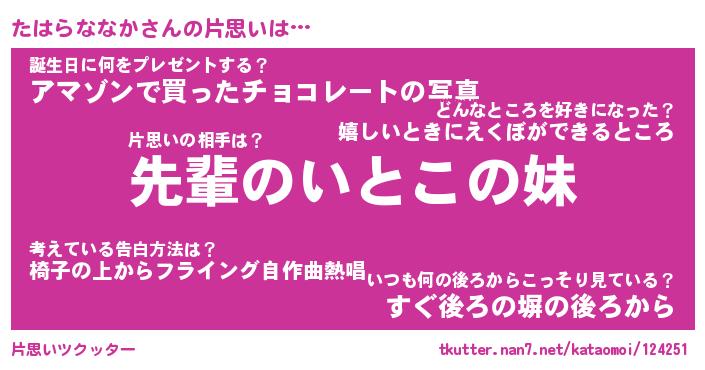 | 胡散臭い通販商品みたいなあだ名 | 『モテモテ間違いなし水晶球…その名も「たはらななか」』 |