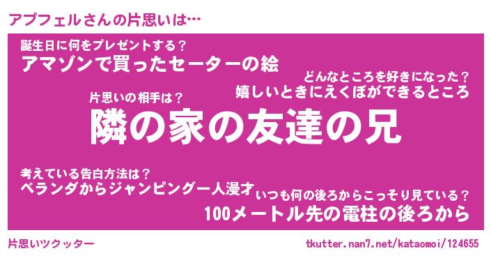 | ファンタジー風あだ名 | 『アプフェル』『エターナルアプフェルー』 |