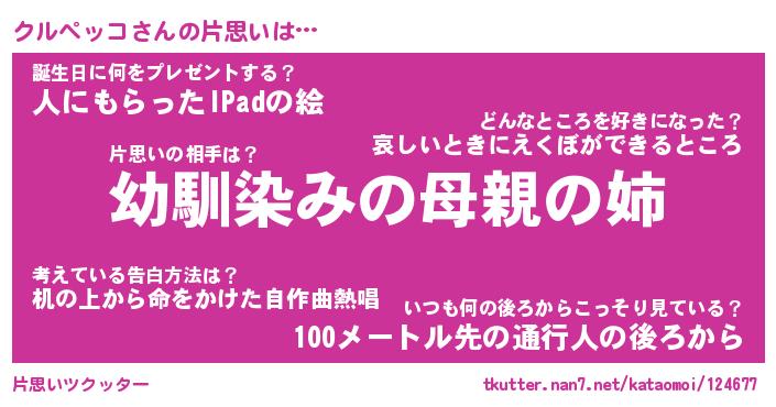 | 男性向けラノベタイトル風あだ名 | 『クルペッコの憂鬱』 |