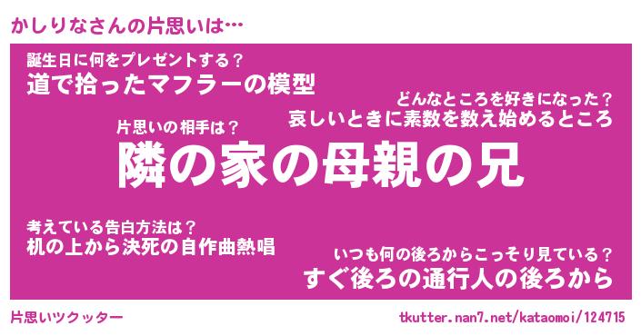 | 胡散臭い通販商品みたいなあだ名 | 『必ず成功するブレスレット…その名も「かしりな」』 |