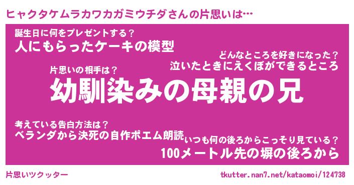 | 女子向けラノベタイトル風あだ名 | 『(仮)ヒャクタケムラカワカガミウチダのやんごとなき事情』 |