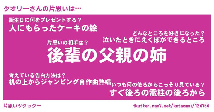 | 意味不明あだ名 | 『ペロリンタオリー』『永久保存タオリー』 |
