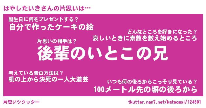 | 胡散臭い通販商品みたいなあだ名 | 『モテモテ間違いなし霊験あらたかなお札…その名も「はやしたいき」』 |