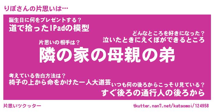 | ヘコむあだ名 | 『りぽにー』『豆乳』『りぽを』 |