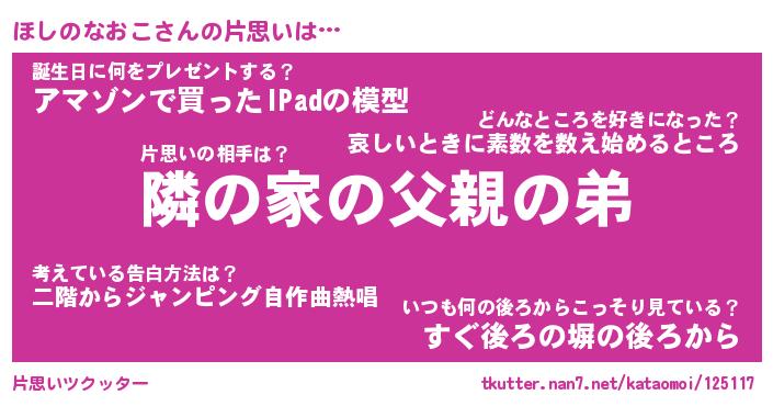 | 胡散臭い通販商品みたいなあだ名 | 『モテモテ間違いなしブレスレット…その名も「ほしのなおこ」』 |