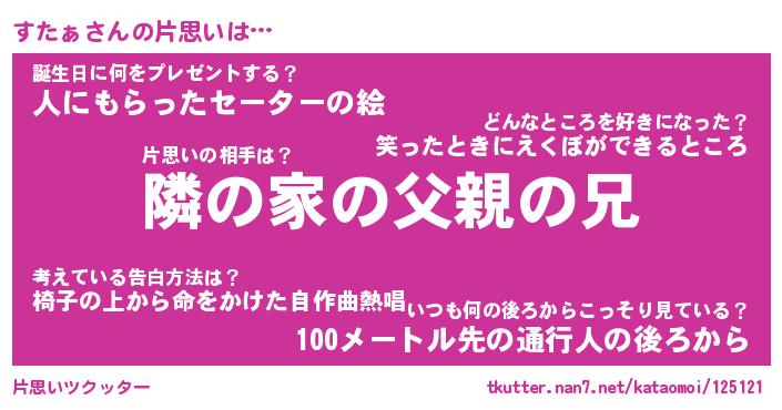 | ヘコむあだ名 | 『すたにゅー』『酢こんぶ』 |