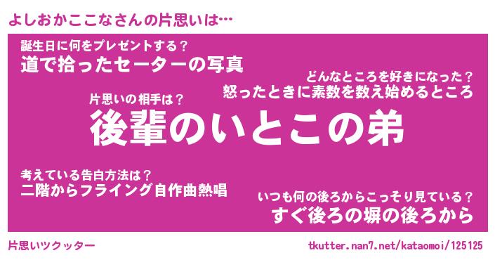| 胡散臭い通販商品みたいなあだ名 | 『億万長者になれる水晶球…その名も「よしおかここな」』 |