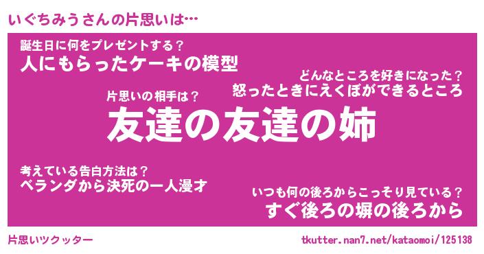 | 肩書あだ名 | 『いぐちみう御曹司』『いぐちみう班長』 |