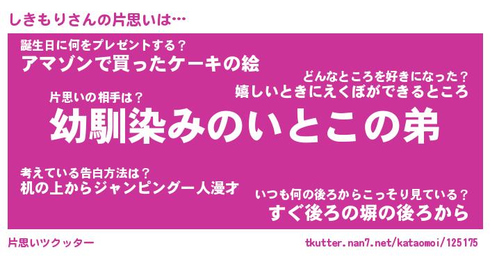 | ヘコむあだ名 | 『しきもー』『なまこ酢』『しきっぺ』 |