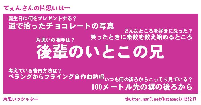| ヘコむあだ名 | 『てぇにゅー』『豆乳』『てぇお』 |