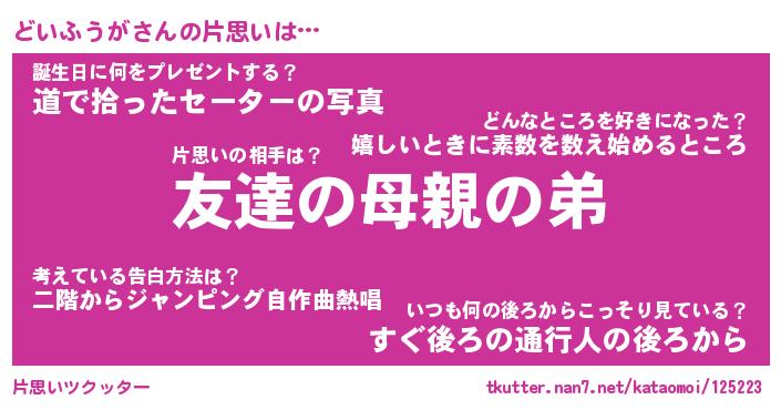 | ヘコむあだ名 | 『どいにー』『牛乳』『どいっぺ』 |