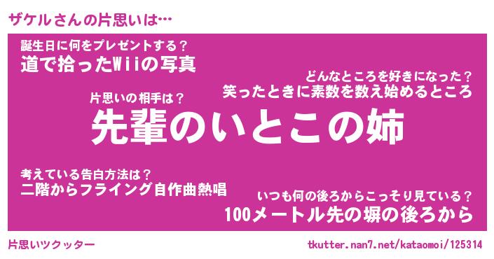 | ファンタジー風あだ名 | 『ザケフェル』『エターナルザケルー』 |
