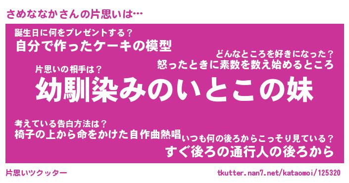 | 猫の名前『さめななかにゃん』性別『メス』 |