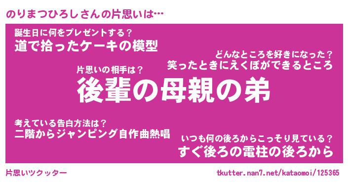 | 胡散臭い通販商品みたいなあだ名 | 『億万長者になれるブレスレット…その名も「のりまつひろし」』 |