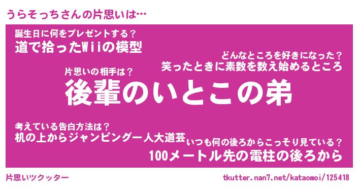 | ヘコむあだ名 | 『うらもー』『豆乳』『うらを』 |