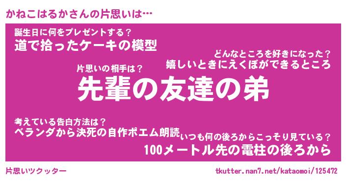 | ツイッター | かねこはるかさんのツイッターID『katatsumuri_nyan』 |