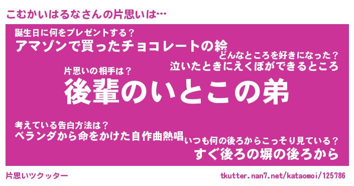 | 胡散臭い通販商品みたいなあだ名 | 『モテモテ間違いなし水晶球…その名も「こむかいはるな」』 |