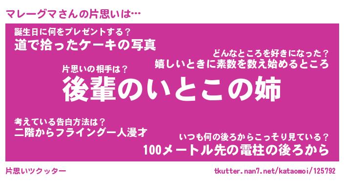 | ヒーロー風カッコイイあだ名 | 『スーパーマレーグマ』『炎刃騎士マレ』 |