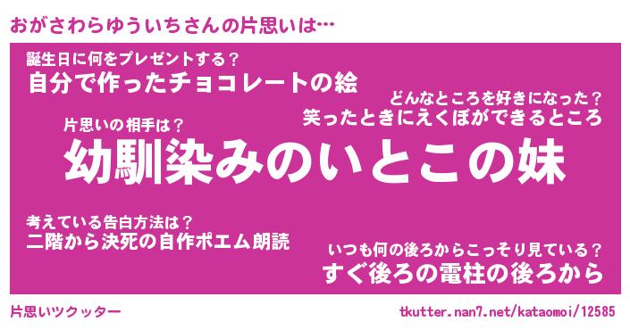 | 男性向けラノベタイトル風あだ名 | 『おがさわらゆういちの憂鬱』 |