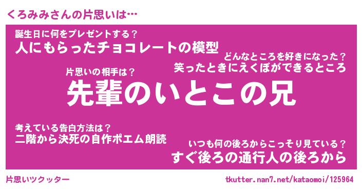 | ヘコむあだ名 | 『くろもー』『豆乳』『くろっ子』 |
