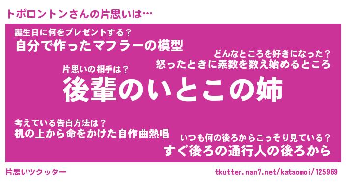 | ヘコむあだ名 | 『トポもー』『つくし』『トポっちょ』 |