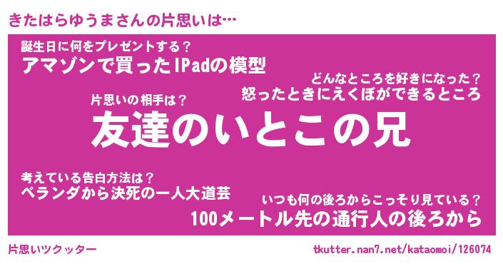 | ヘコむあだ名 | 『きたにゅー』『牛乳』『きたっちょ』 |