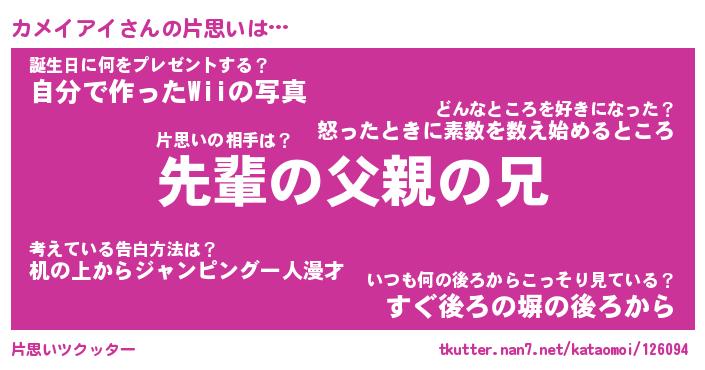 | ファンタジー風あだ名 | 『カメフェル』『エターナルカメイアイー』 |
