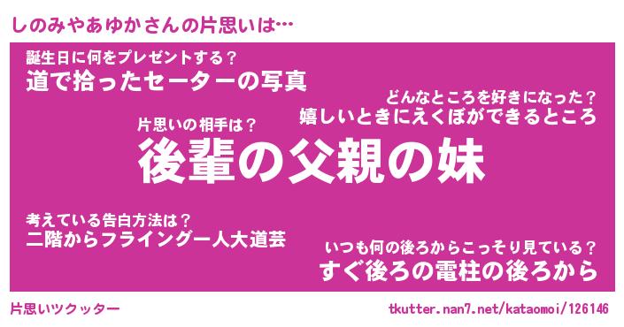 | 意味不明あだ名 | 『ペロリンしのみやあゆか』 |