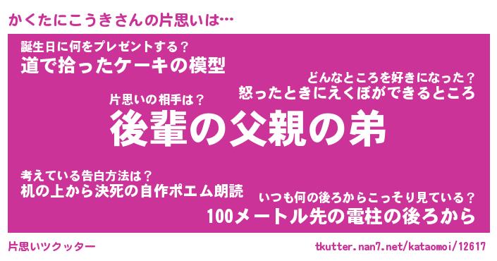 | ヘコむあだ名 | 『かくふぇ~』『豆乳』『かくお』 |